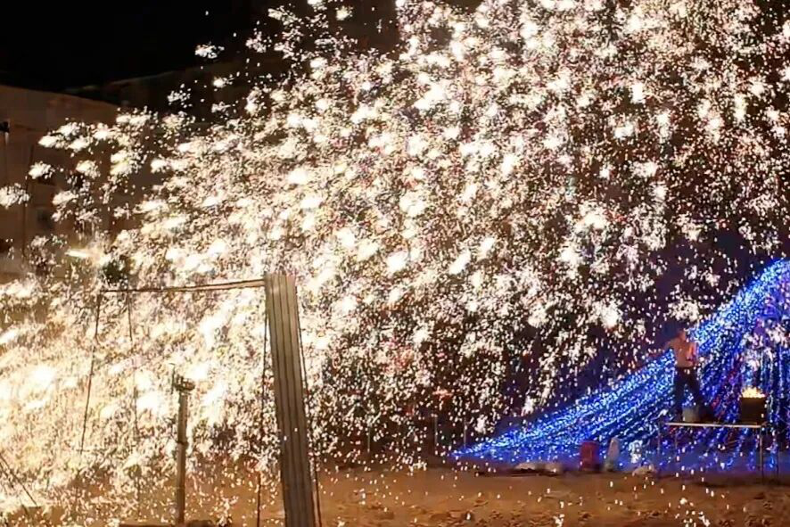 在現(xiàn)場,被譽為"中華第一奇景"的打鐵花表演,將1600°C鐵水潑向夜空,化作漫天星火,古老技藝與黑色夜空交織出獨屬于中國年的浪漫與豪情;與之相映的千年火狐表演,以紅焰?zhèn)鬟f新春喜慶,將現(xiàn)場氣氛推向高潮。
